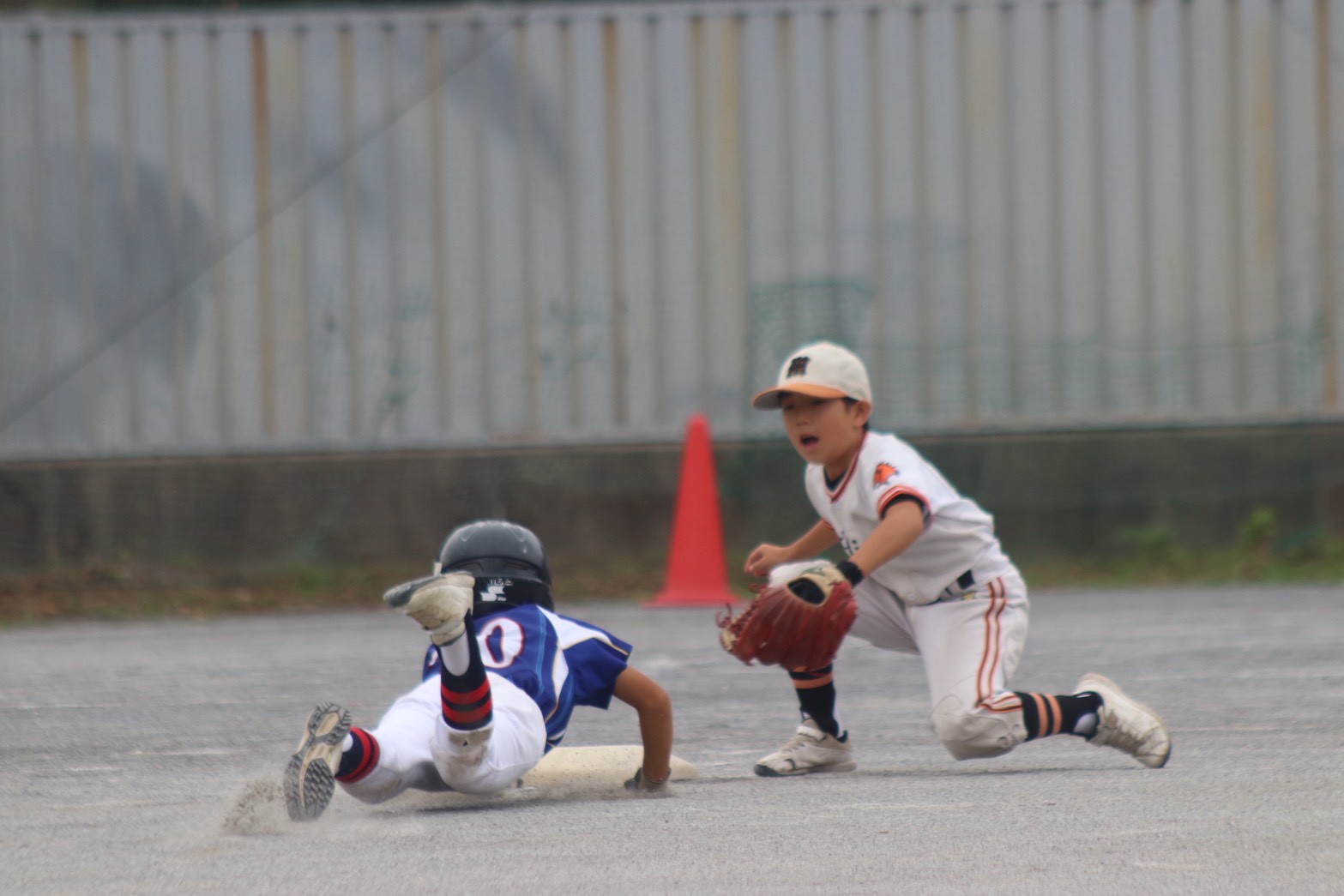 次のバッターに死球を与えてしまい、盗塁を決められ再度ピンチ。次のバッター…センターに上がったフライを2年生がしっかり落下点に入りアウトを取ります。ナイスプレーでした。
