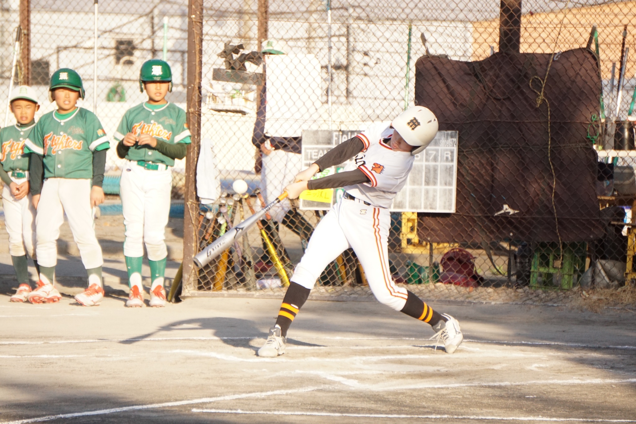 初回の攻撃、三者凡退で終わるとその裏相手の攻撃、テンポよく二人打ち取るも3番にセンター前ヒット、4番にレフトオーバーを打たれ先制されます。